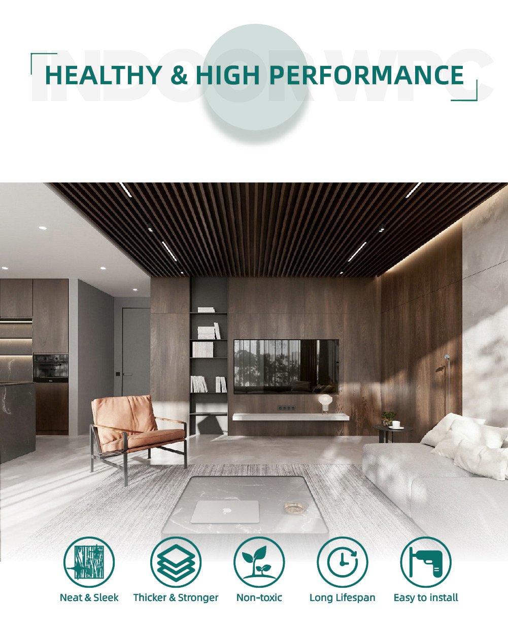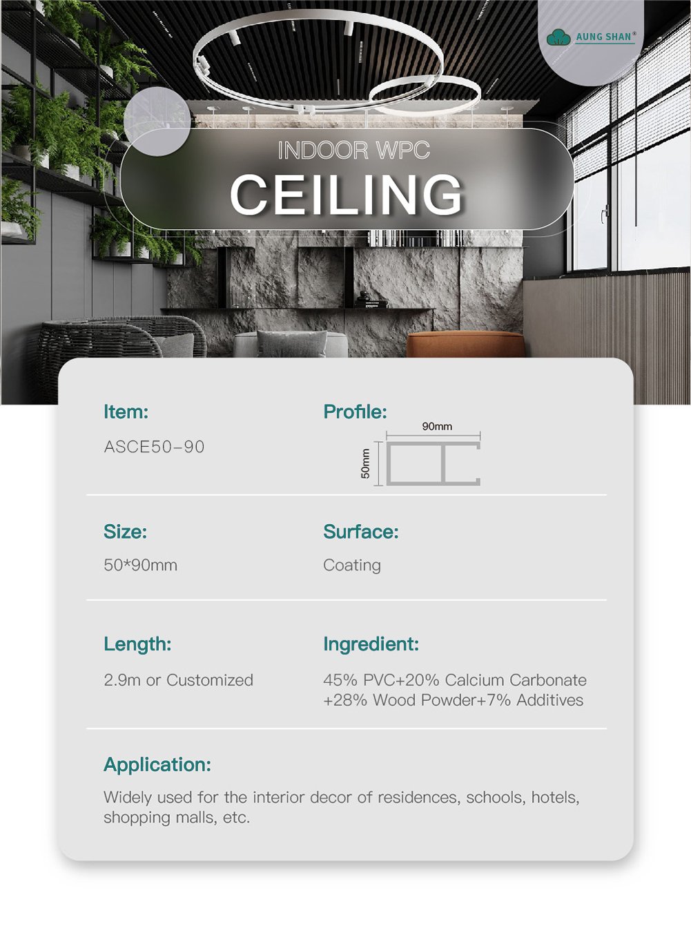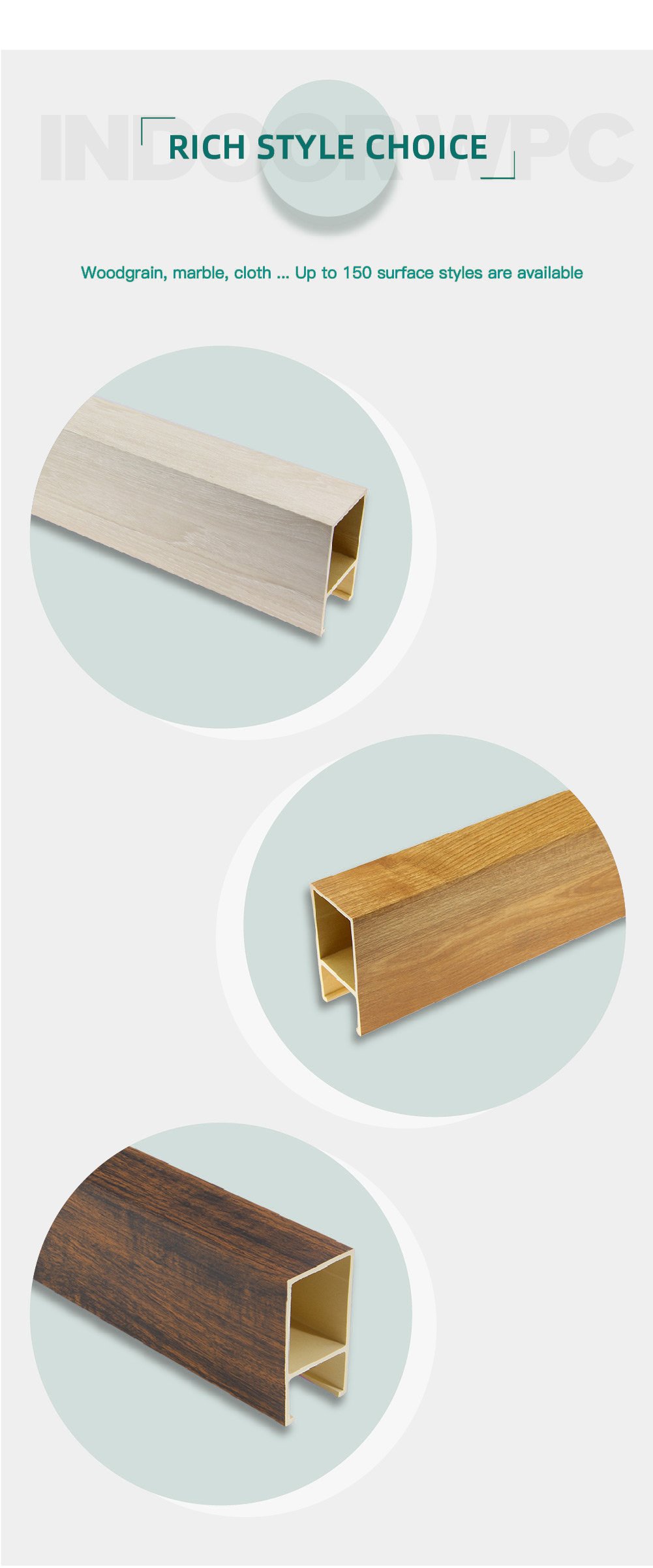Ingredient: 45% PVC+20% Calcium Carbonate+28% Wood Powder+7% Additives